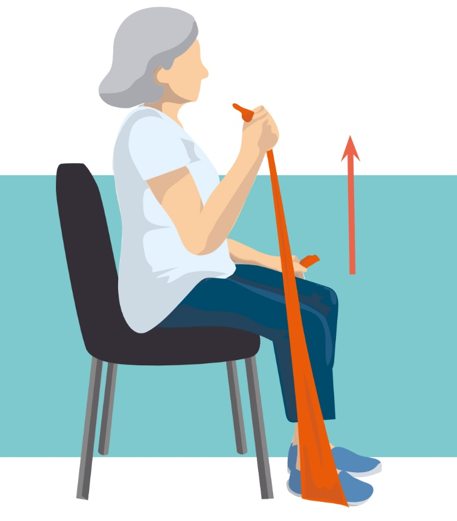 - Keep your elbows at your sides and your wrists straight. Bend your right elbow and bring your hand to your right shoulder, without taking your back off the backrest.
