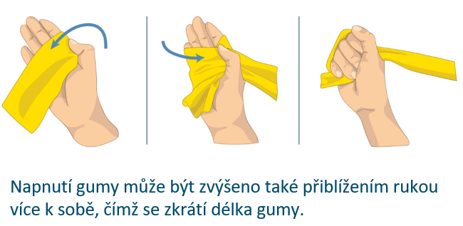 Chyťte gumu pevně, popř. si ji omotejte kolem ruky nebo kolem nohy, aby se zabránilo jejímu uvolnění a případnému zranění. Cvičení provádějte pomalu a kontrolovaně a dávejte pozor, aby se guma neuvolnila.