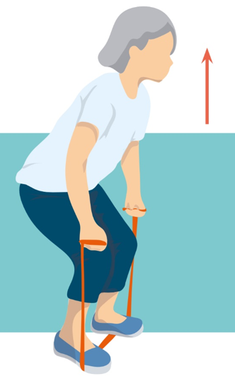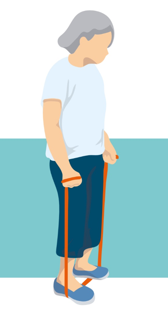 • Postavte se, gumu dejte pod obě chodidla a v každé ruce držte jeden konec gumy.