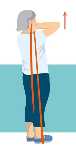 • Držte gumu pevně oběma rukama, palce směřují nahoru a ohněte ruce v loktech tak, že se dotýkají vašeho těla.