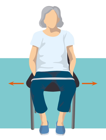 - Entspannen Sie Ihre Schultern und spreizen Sie die Beine leicht, ohne dabei die Füsse anzuheben, wobei Sie mit den Oberschenkeln Druck ausüben und den Rücken gerade halten.