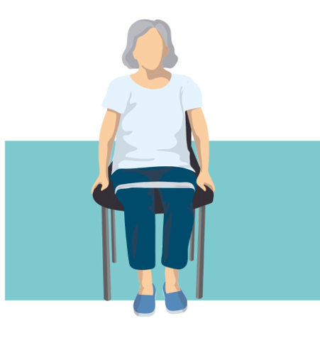 - Sjednite na stolicu s naslonom, ispravljenih leđa, potpuno se oslonite na oba stopala na pod.